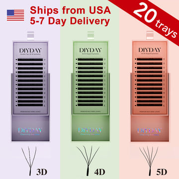 Extensiones de pestañas DIYDAY en forma de W, prefabricadas, suaves y naturales, 3D, 4D, 5D, 6D, 7D y 8D.
