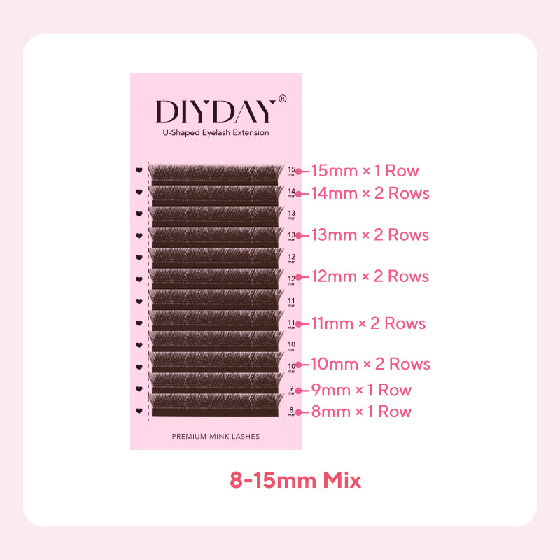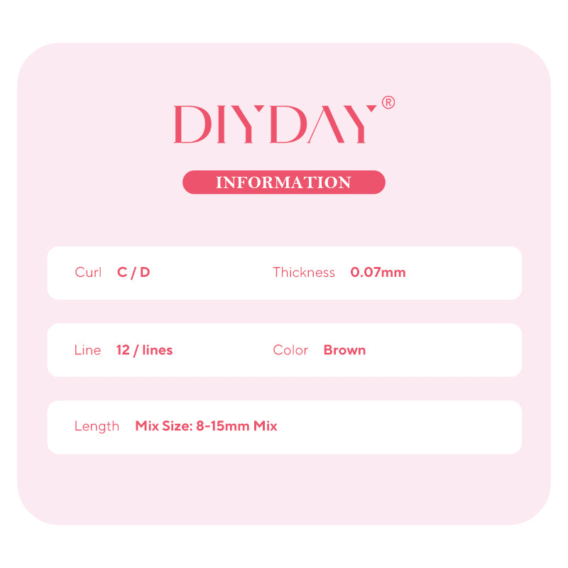 Pestañas postizas en forma de U DIYDAY, 12 filas, 0,07 mm, C/D